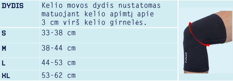 Ypatingas dizainas: abiejose pusėse esančios itin tampraus pluošto juostelės patikimai priglunda ir neleidžia movai nuslysti. Mova prilaiko kelio sąnarį treniruočių ir pratimų metu.