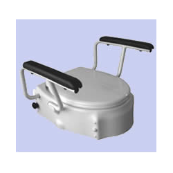 Reguliuojamo aukščio tualeto paaukštinimas su dangčiu ir paminkštintais atlenkiamais porankiais. Pagamintas iš tvirto plastiko, tinka visiems standartiniams klozetams.