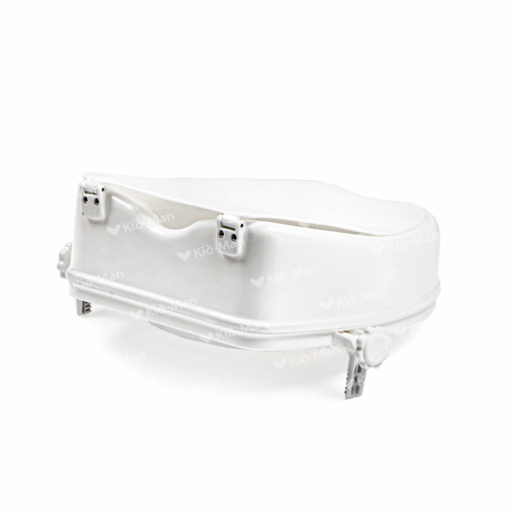 tinkamas daugeliui standartinių matmenų klozetų. Sėdimoji dalis patogiai išformuota su plačia išpjova priekinėje ir galinėje dalyse. Paaukštinimas tvirtai fiksuojamas specialiais laikikliais, esančiais šonuose, nenaudojant specialių įrankių.